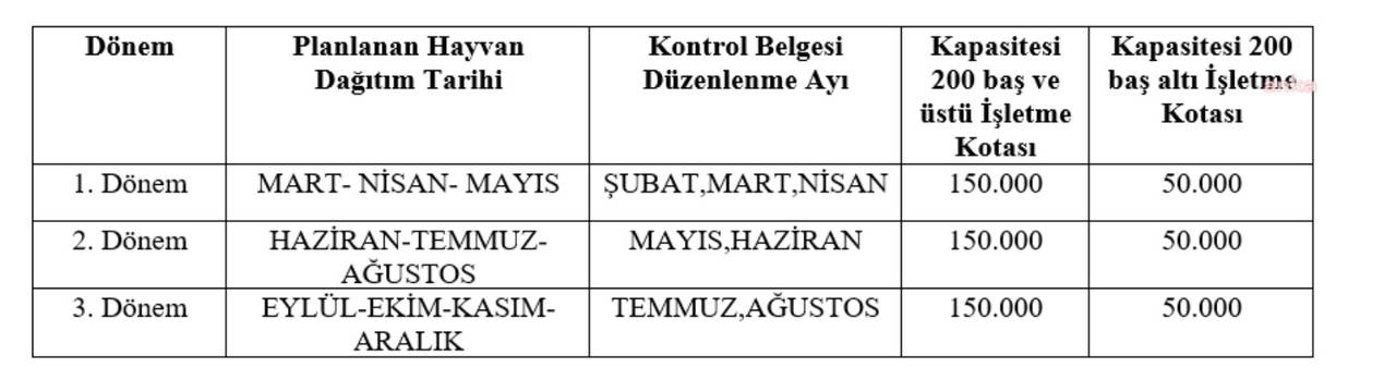 İşletmesi 200 hayvan kapasiteli işletmeler başvuruları Türkiye Kırmızı Et Üreticileri Merkez Birliğine yapacak, başvurular Et ve Süt Kurumu tarafından değerlendirilecek.