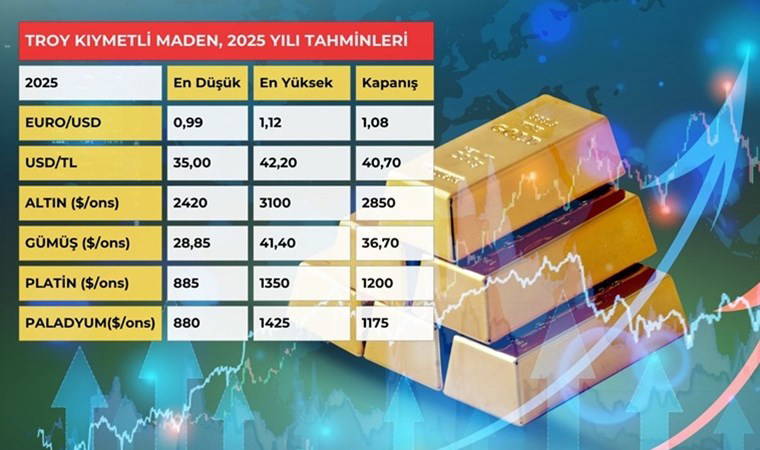 Troy Kıymetli Maden Ticaret A.Ş. “Kıymetli Madenler 2025 Beklentileri” raporunda, “Geçen yıl faizlerde toplamda 100 baz puan indirime giden FED’in bu yıl enflasyon beklentilerine paralel daha temkinli bir politika izlemesi bekleniyor. Ancak temkinli de olsa faiz indirimlerinin devamının kıymetli madenlere olumlu yansımasını bekliyoruz. Diğer yandan ABD Başkanı Donald Trump’ın, gümrük vergileri konusunda seçim sürecinde dillendirdiği politikaları hangi ölçüde uygulayacağı ve bunların ticaret savaşlarına etkisinin ne olacağı konusunda belirsizlikler söz konusu. Daha net ifadeyle 2025; siyasi, ekonomik ve ticari kaygıların etkisiyle yatırımcıların güvenli liman varlıklarına ilgisini devam edeceği bir yıl olacak. Ayrıca, dünyanın ikinci büyük ekonomisi olan Çin’in, 2025’te ekonomiyi canlandırmaya yönelik adımlarının ne kadar başarılı olacağı endüstriyel kullanım alanı olan metallerin değerlemelerinde etkili olacak” denildi.
