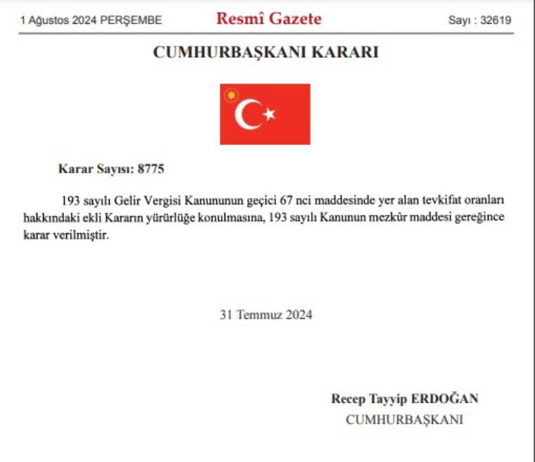 AKP Genel Başkanı ve Cumhurbaşkanı Tayyip Erdoğan'ın imzasıyla Resmi Gazete’de yayımlanan kararla KKM’ye 6 ay vadeli olanlarda yüzde 7,5, 1 yıla kadar vadeli olanlarda yüzde 5 stopaj getirildi.