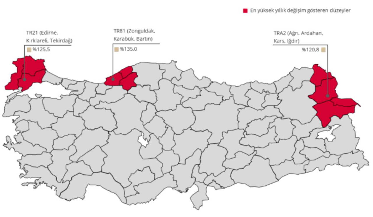 Ağrı, Ardahan, Kars, Iğdır: Yüzde 120,8