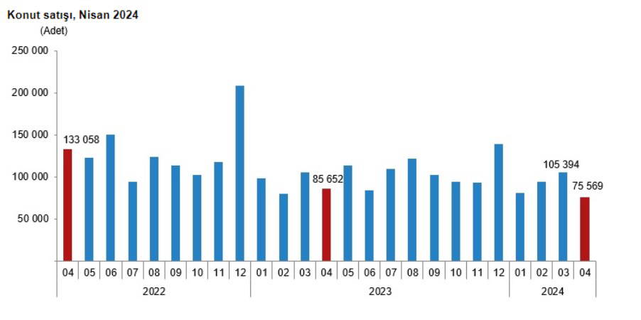 Türkiye İstatistik Kurumu (TÜİK), 2024 yılı nisan ayı konut satış istatistiklerini açıkladı.
