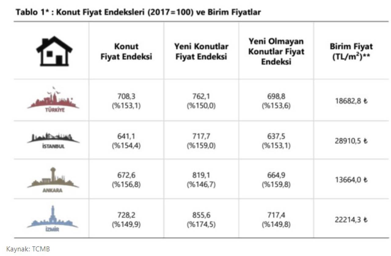 Aynı dönemde İzmir’de konut fiyatları yüzde 149,9 artarken, bu artış İstanbul’da yüzde 154,4 ve Ankara’da yüzde 156,8 oldu. Ankara’da artış hızı, İstanbul’u geçmiş oldu.