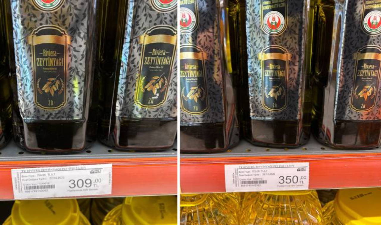 Erdoğan’ın çağrısından önce 309 TL’ye satılan 2 litrelik zeytinyağı, hiç indirime girmedi ve aradan geçen bir haftada fiyatı yüzde 14 zamlanarak 350 TL oldu. Aynı dönemlerde 114 TL’ye satılan 525 gram peynir bugün 127.50 TL’ye satılıyor. 39.50 TL’ye satılan fasulye de indirime girmemişti. Ancak bugün aynı markette 44.90 TL’ye satılıyor. İndirim çağrısından önce 69.90 TL’ye satılan buğday unu da, hiç indirim görmeden zamlanarak bugün 73.90 TL’ye satılıyor.