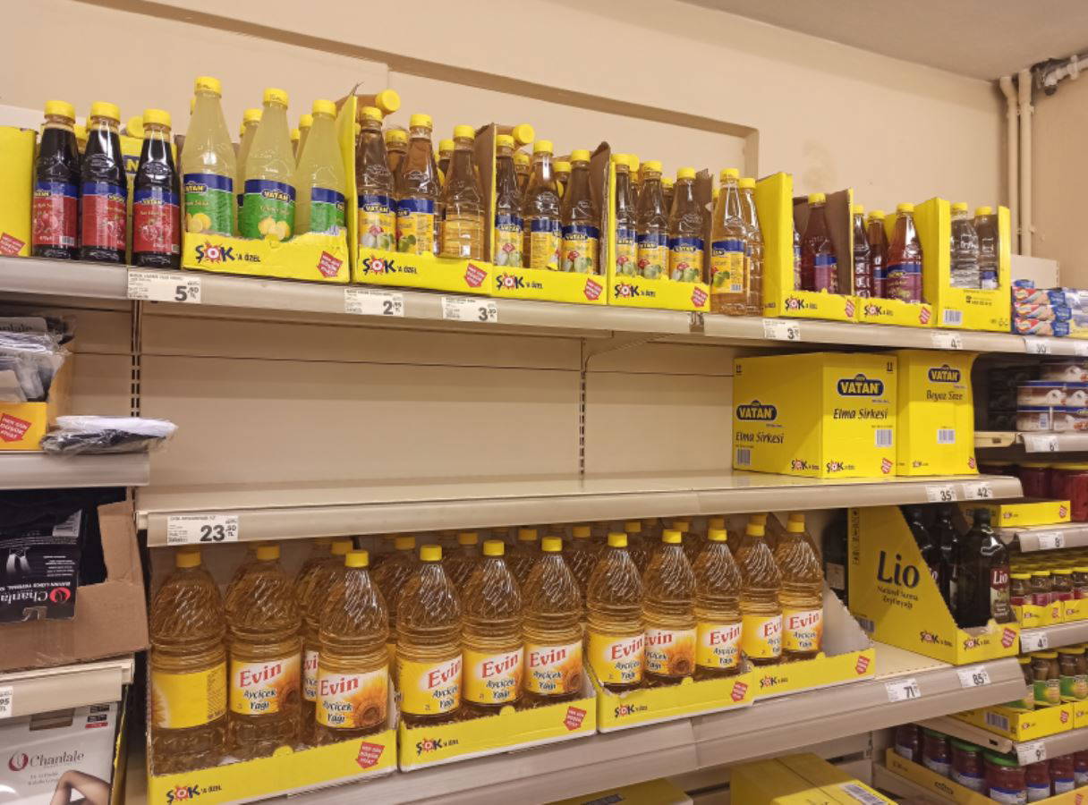 Daha önce fahiş fiyat uyguladıkları iddiasıyla rekor cezalara tabi tutulan ve halk arasında üç harfliler olarak bilinen zincir marketlerde çalışanlar mağazalara ürünlerin çok az geldiğini belirtiyor. Çalışanlar birçok üründe kesin kural olduğunu ve ikiden fazla ürün satamadıklarını söylerken bu ürünlerin listesinin de gün geçtikçe arttığını belirtiyor. Geçen aylarda un ve yağ gibi ürünlerde kota uygulanırken şimdi salça, süt ve Türk kahvesini de ikiden fazla satamadıklarını söyleyen bir market çalışanı, “Farklı markalardan alsanız bile ikiden fazla ürünü kasadan geçemiyorum maalesef” dedi. Tuvalet kağıdı reyonunun neden boş olduğunu sorduğumuzda ise “Neredeyse bir aydır doğru düzgün gelmiyor” diye konuştu.
