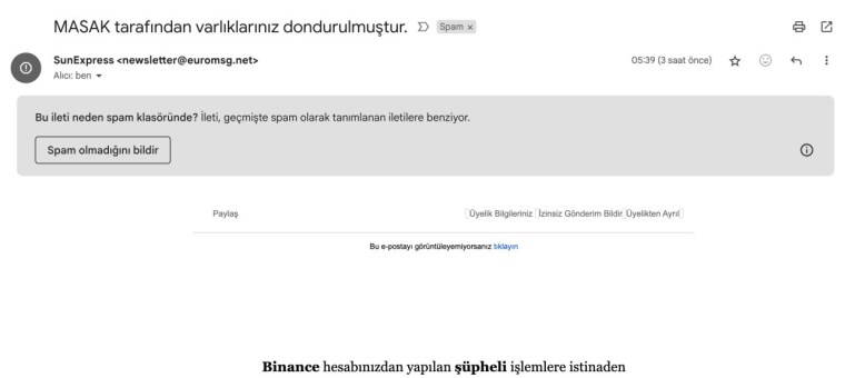Bir hava yolu şirketi olan SunExpress’in adını, Hazine ve Maliye Bakanlığına bağlı olan bir finansal istihbarat birimi olan Mali Suçları Araştırma Kurulu’nun yani MASAK’ın adını ve son olarak çeşitli kripto para birimlerinin alım satımı için bir platform sağlayan bir kripto para borsası olan Binance’nin adını kullanan dolandırıcılar yeni bir yöntem bulmuş.