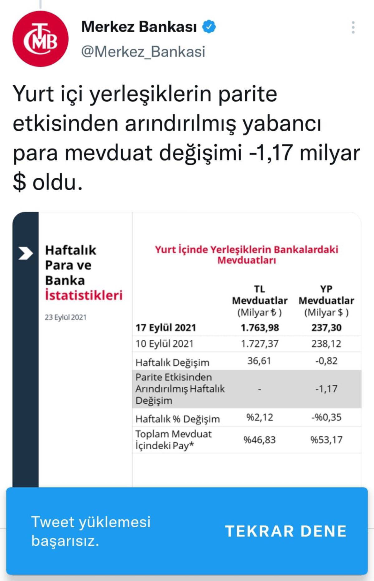 - Merkez Bankası bugün 1,5 saat içinde, aynı konuyla ilgili üç defa twit attı sildi, twit attı sildi. Ehil olmayanları iş başına getirirseniz olacağı budur. Türkiye’nin en güzide kurumunu ne hale getirdiniz! Hesap ver @sahapkavcioglu