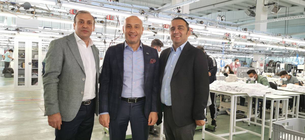 Mustafa Paşahan (soldan), Mustafa Gültepe, Urfi Akbalık Malatya'da ki tekstil ve hazır giyim tesislerini gazetecilerle birlikte gezdi.