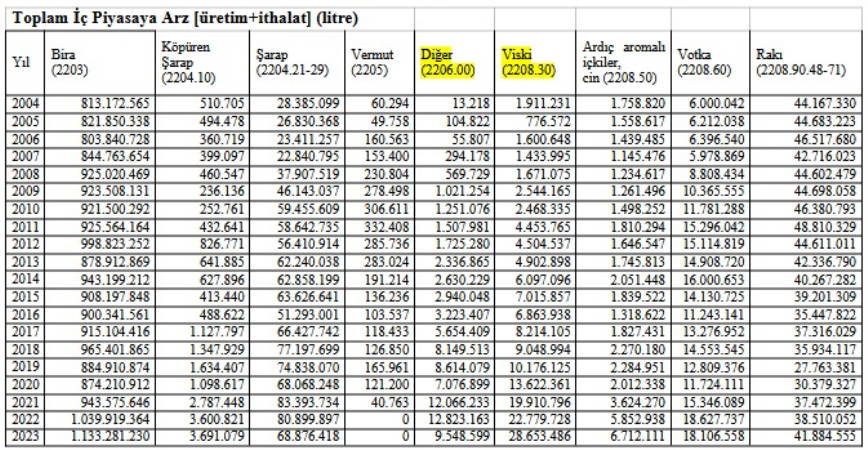 AKP iktidarı döneminde son 19 yılda içki tüketimi ağır vergi ve sınırlandırmalara karşın yüzde 46.3 oranında arttı. Araştırmaya göre, 2004 yılında 895 milyon 979 bin 304 litre içki tüketilirken, 2023 yılında bu rakam 1 milyar 310 milyon 754 bin 36 litreye çıktı. Bira tüketimi son 19 yılda yüzde 39.3, şarap tüketimi yüzde 142.6 artarken, rakı tüketimi ise yüzde 5.2 düştü.