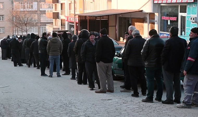 Yurttaşlar, Yozgat'ta sadece bir tane olan ve sabah saat 09.30’da açılan ESK satış mağazasının erken saatlerde sıraya giriyor.