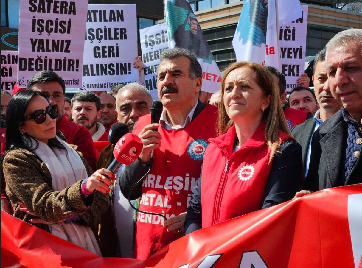 "Eğer 3 gün içerisinde işveren Satera, işçilerin bu sendikalaşma mücadelesine saygı gösterir, atılan işçileri geri alır ve sendikayla görüşmelere başlarsa; bu mücadeleyi elbette fabrikanın içerisinde ve sözleşme süreci içerisinde sürdüreceğiz. Ancak işveren kabul etmediği tadirde, biz 3 günün sonunda burada, Cegiz Holding'in önünde çadır kuracağız ve evlerimizi buraya taşıyacağız."