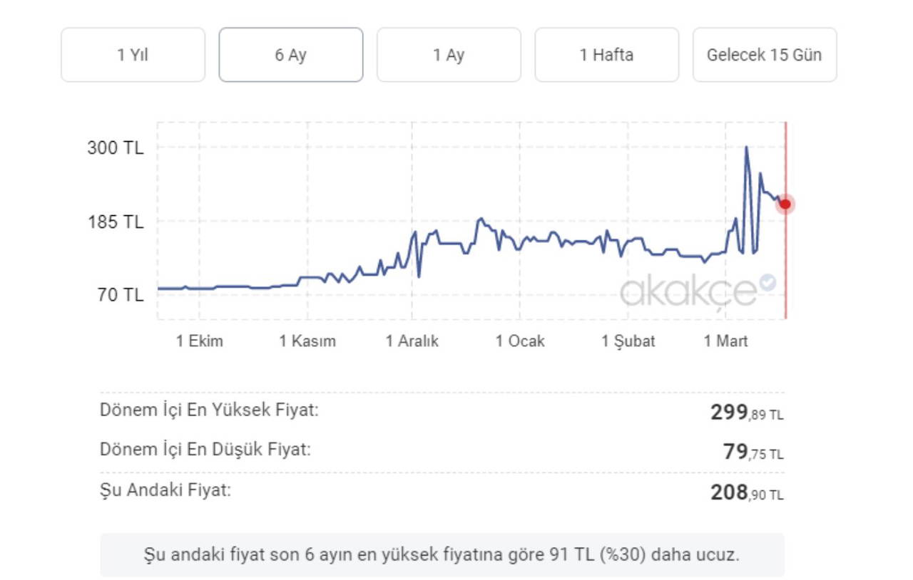 5 litrelik bir zeytinyağının son 6 aydaki fiyat değişimi. / 18 Mart 2022