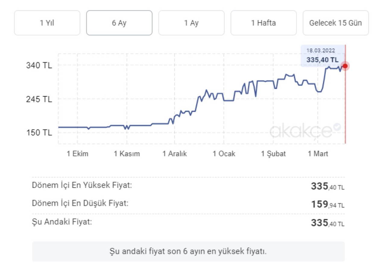 5 litrelik bir ayçiçek yağının son 6 aydaki fiyat değişimi. / 18 Mart 2022