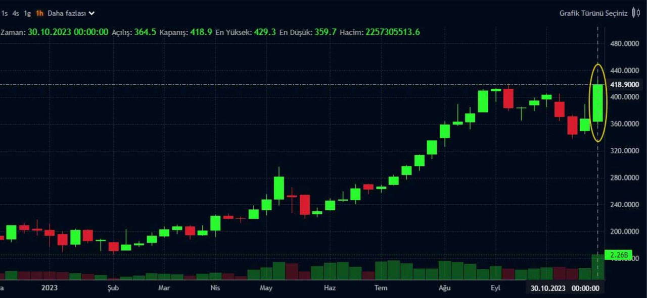 Kasım ayının ilk haftasında borsada yatırımcılara en çok kazanç getiren hisse senedi CCOLA oldu. Haftalık bazda yüzde 13 yükselen hisse senedi 418 TL’ye çıktı. Hisse senedi hafta içinde 429 TL’ye kadar çıktı ve rekor seviyesini gördü.