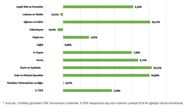 TÜİK alt grupları gösterge olarak alındığında en çok aylık düşüş -yüzde 0,64 ile Haberleşme en fazla yükseliş ise yüzde 10,32 ile Giyim ve Ayakkabı kaleminde gerçekleşmiştir.