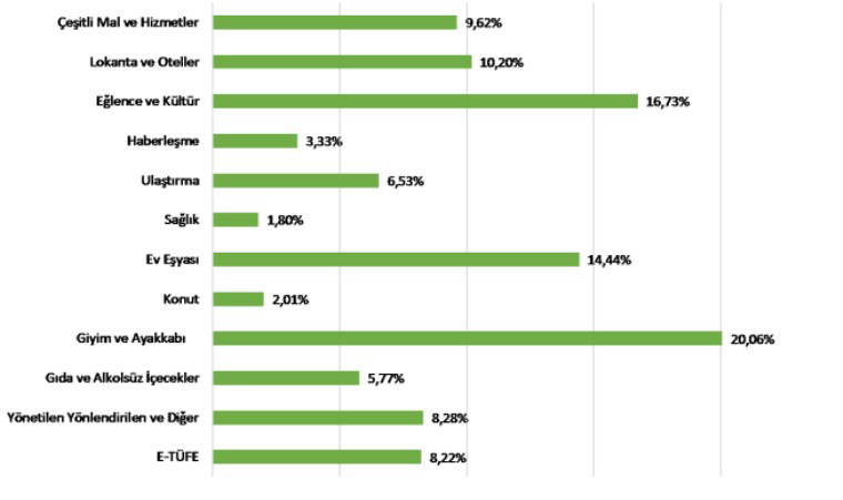 ENAG ayrıca, TÜİK ana harcama gruplarıyla karşılaştırmalı olarak ürün alt gruplarına ilişkin enflasyon oranlarını da içeren bir grafik yayımladı.