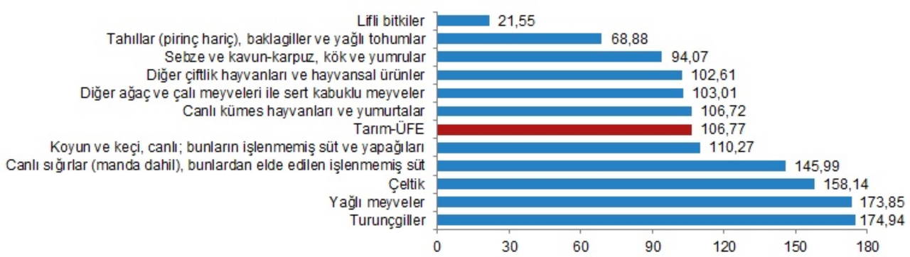 Yıllık Tarım-ÜFE'ye göre 6 alt grup daha düşük, 5 alt grup daha yüksek değişim gösterdi.