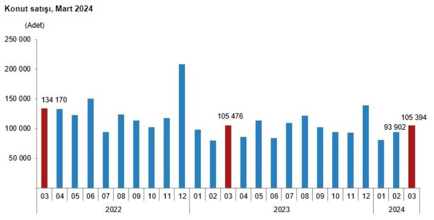 Türkiye İstatistik Kurumu (TÜİK), Mart 2024 dönemine ilişkin Konut Satış İstatistikleri raporunu yayımladı.
