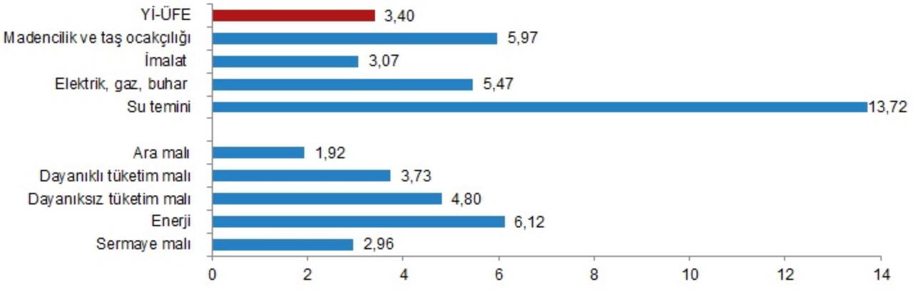 Bu yıl ocak ayında aylık bazda yüzde 4,15, şubatta yüzde 1,56, martta yüzde 0,44, nisanda yüzde 0,81, mayısta yüzde 0,65 ve haziranda yüzde 6,50 artan Yİ-ÜFE, temmuzda aylık yüzde 8,23 ve ağustosta yüzde 5,89 yükselmişti.