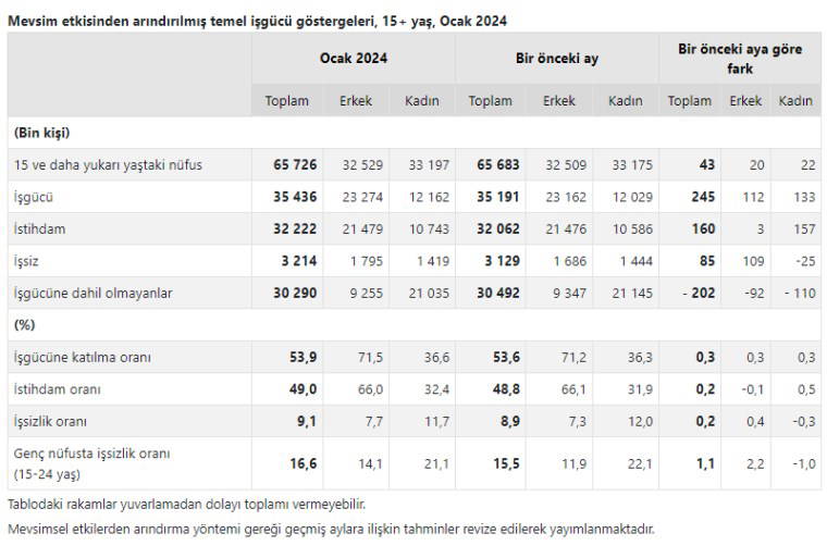 Buna göre, 15 ve daha yukarı yaştaki kişilerde işsiz sayısı 2024 yılı Ocak ayında bir önceki aya göre 85 bin kişi artarak 3 milyon 214 bin kişi oldu.