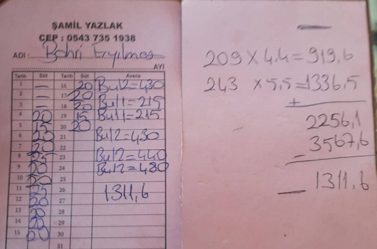 “Devlet yedi buçuk lira açıkladı. Ama biz şu an beş buçuk liraya veriyoruz. Toplayan öyle topluyor bizden. Onun yüzünden iki kere, yem zam koydular; 40 lira. İki gün önce arpa ezmesini 265 liraya aldık. Bugün aldık 285 liraya. Bizim zarar çok. Nasıl olacaksa? Bizim bölgede, beş liraya alıyorlar. Başka yerlerde yedi liraya alırlarmış, yedi buçuğa (7,5 lira) alırlarmış. Bizim bölgeye geldi mi, yok. Niye zamlanmıyor?”