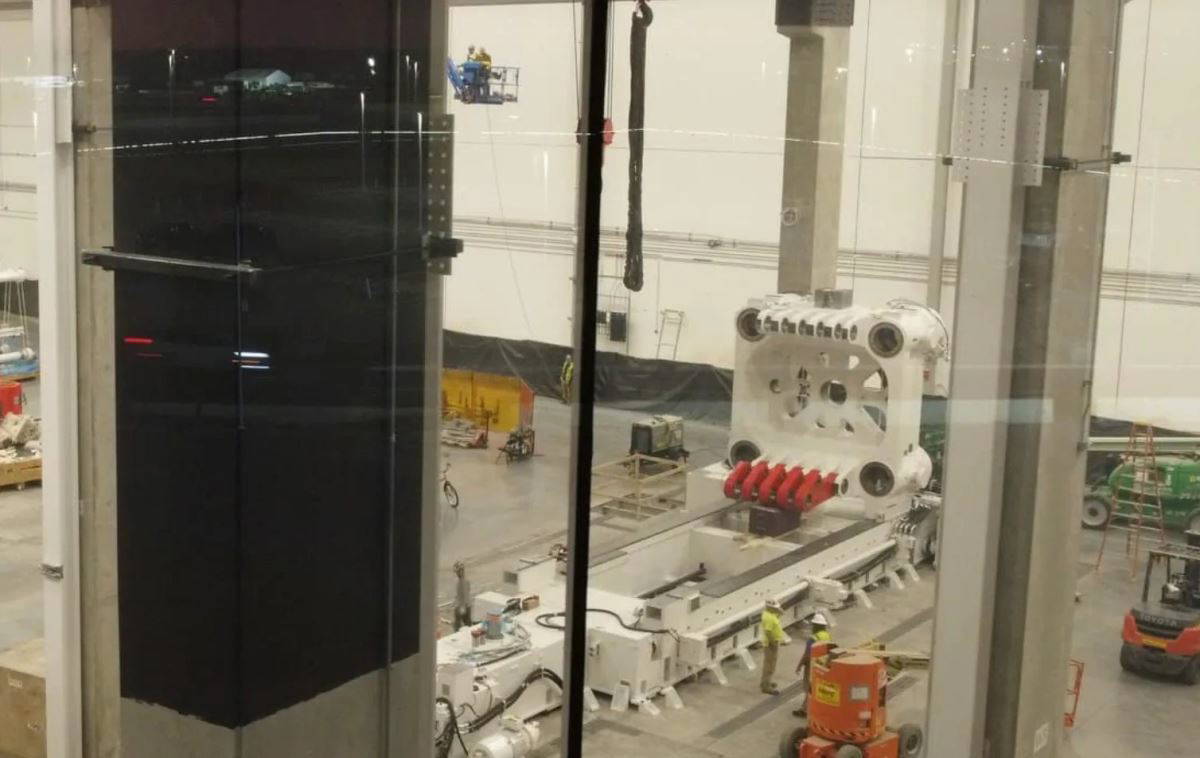 Dev makine, Tesla'nın Cybertruck'ın gövdesini inşa etmeyi planladığı fabrikanın bir bölümünde kısmen monte edilmiş olarak görüldü.