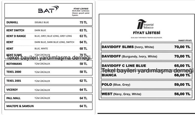 Zam sonrası BAT grubunun en pahalı sigarası 75 TL, en ucuzu 58 TL; TT grubunun en pahalı sigarası 64 lira, en ucuzu 53 TL; Imperial Tobacco grubunun en pahalı sigarası 70 TL; en ucuzu ise 56 TL oldu. Sigara zammı bugünden itibaren geçerli olacak.