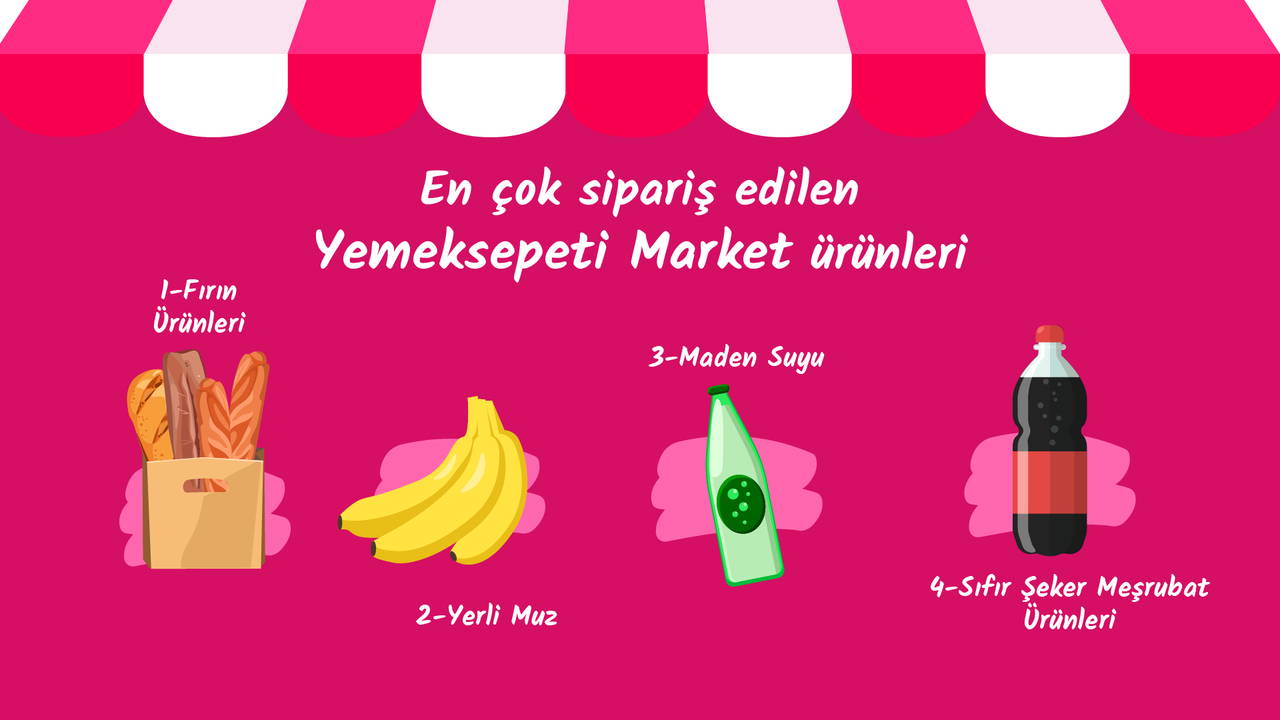 2023'te Yemeksepeti Market'ten en çok sipariş edilen ürünler arasında fırın ürünleri, yerli muz ve maden suyu gibi günlük ihtiyaçlar öne çıkıyor. Meşrubatların yanı sıra, sıfır şekerli alternatiflerin siparişlerde giderek öne çıkıyor olması, düşük kalorili seçeneklere olan ilginin arttığını gösteriyor.