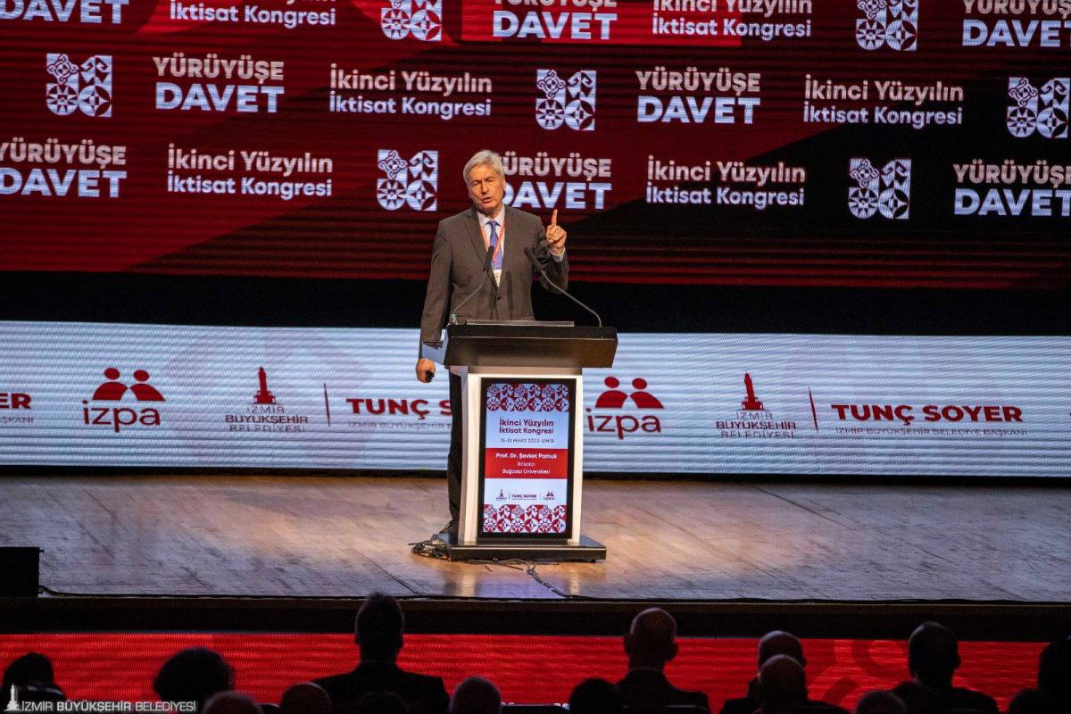 İkinci Yüzyılın İktisat Kongresi’nin “Yürüyüşe Davet” başlıklı üçüncü gününün ilk konuşmacısı iktisatçı Boğaziçi Üniversitesi Öğretim Üyesi Prof. Dr. Şevket Pamuk oldu. 1923 yılındaki İktisat Kongresi’nden ikinci yüzyıla geçen süreci rakamlarla anlatan Pamuk, Cumhuriyetin ekonomisinin yüzyıl sonra bugün farklı bir yerde olduğunu dile getirerek şöyle konuştu: