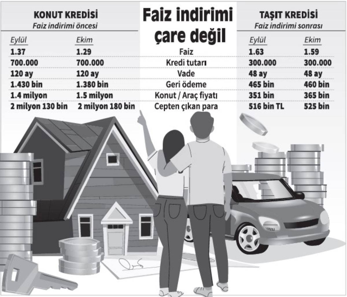 Daha önce 23 Eylül günü düşürülen 100 baz puan ile birlikte 300 puanlık bir faiz indirimi nedeniyle döviz artışları yaşandı. Dövizdeki istikrarsızlıkla bir süredir birçok hammaddeye zam yağıyor ve ekonomistler enflasyon rakamlarının patlayacağını öngörüyor. Üç kamu bankasının faiz indirimlerinin piyasalara nasıl yansıdığını ise örneklerle emlakçı ve otomobil satıcılarına sorduk.