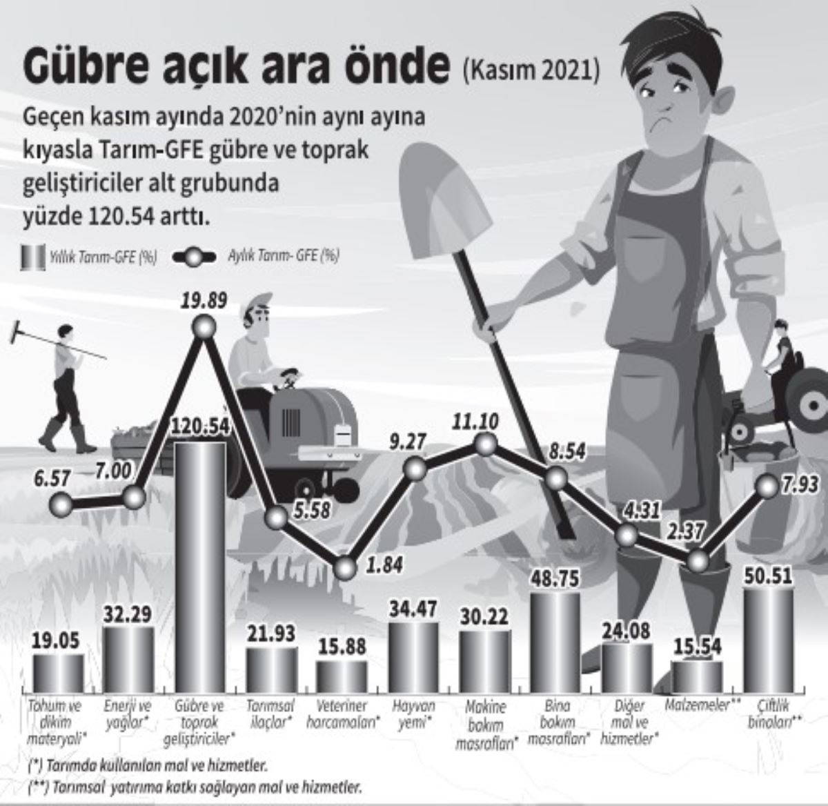 “Normalde 2 milyon ton ithal ediyorduk. Ama bu yıl görünen o ki daha fazla ithal edeceğiz. Çünkü alandan aldığımız bilgilere göre, çiftçi gübre atamadı toprağa. Gübre yüzde 400 zam gördü, mazot fiyatları zaten herkesin malumu elektrik de iki katından fazla arttı. Birçok üreticinin de, bu maliyetlerle üretim yapıp zarar etmektense toprağı boş bıraktığını biliyoruz. Bu da doğal olarak rekoltenin düşmesi anlamına geliyor. Son gübre önümüzdeki ay atılmalı çiftçinin alım gücüne ve gübre fiyatlarına bağlı.”