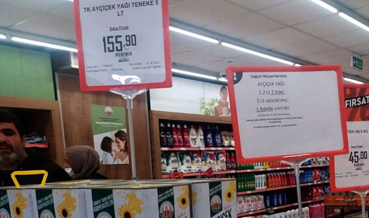 Vali Karaloğlu'nun iki hafta önce açılışını yaptığı markette 92,5 liradan satışa sunulan 5 litrelik ayçiçeği yağının raflarda 155 liraya satılması tüketicileri şoke etti.