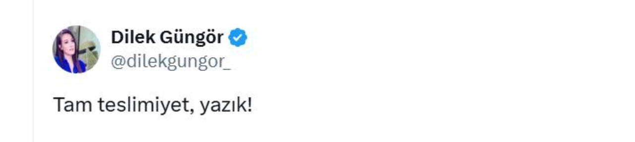 Sabah Gazetesi’nin Ekonomi yazarı Dilek Güngör, Merkez Bankası’nın faiz kararının ardından sosyal medya hesabından “Tam teslimiyet, yazık!” ifadelerini kullandı.