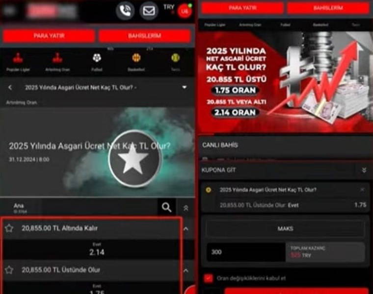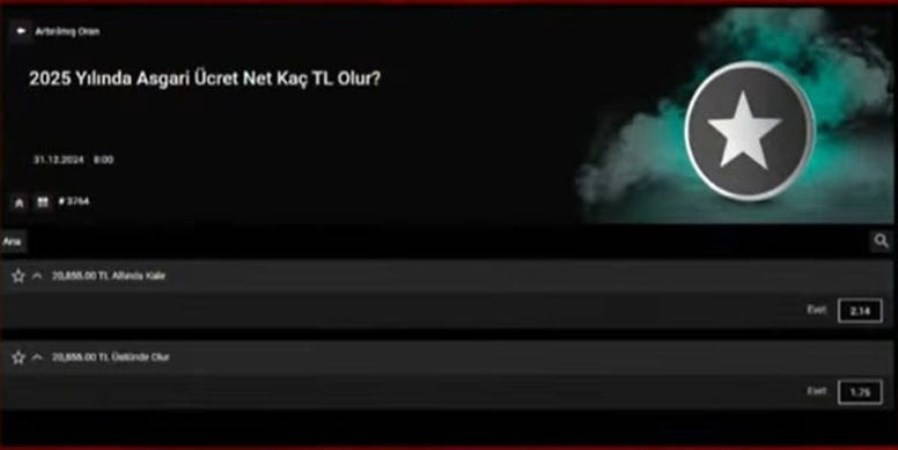 Sözcü TV'nin haberine göre, yasadışı bahis siteleri, “Asgari ücret ne kadar olur?” adı altında özel oranlarla bahis açtı. Çalışanların ve yurttaşların, beklenen maaş artışına ilişkin duyduğu belirsizlik ve endişe, bu yasadışı bahislerin artmasına neden oluyor.