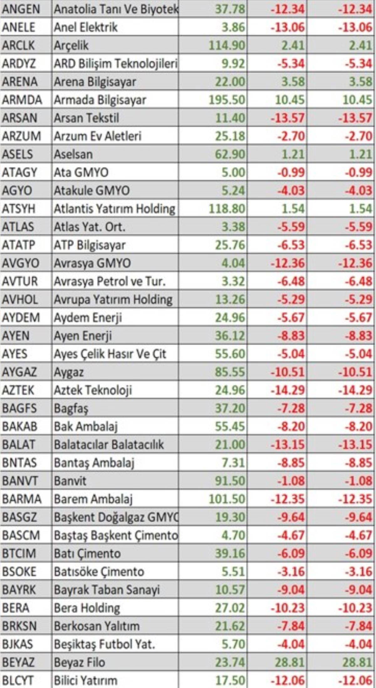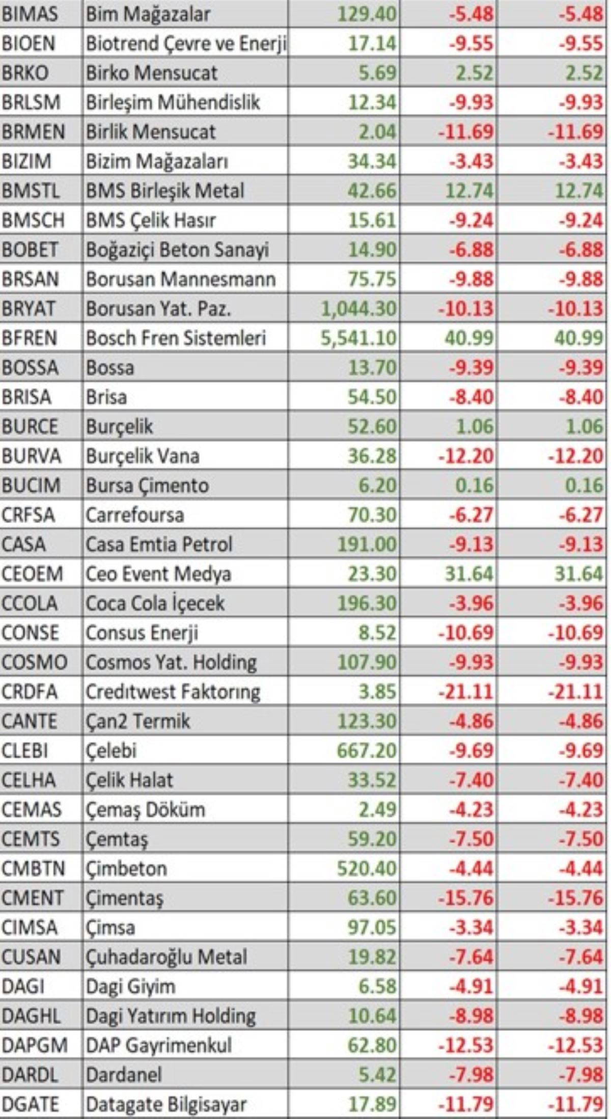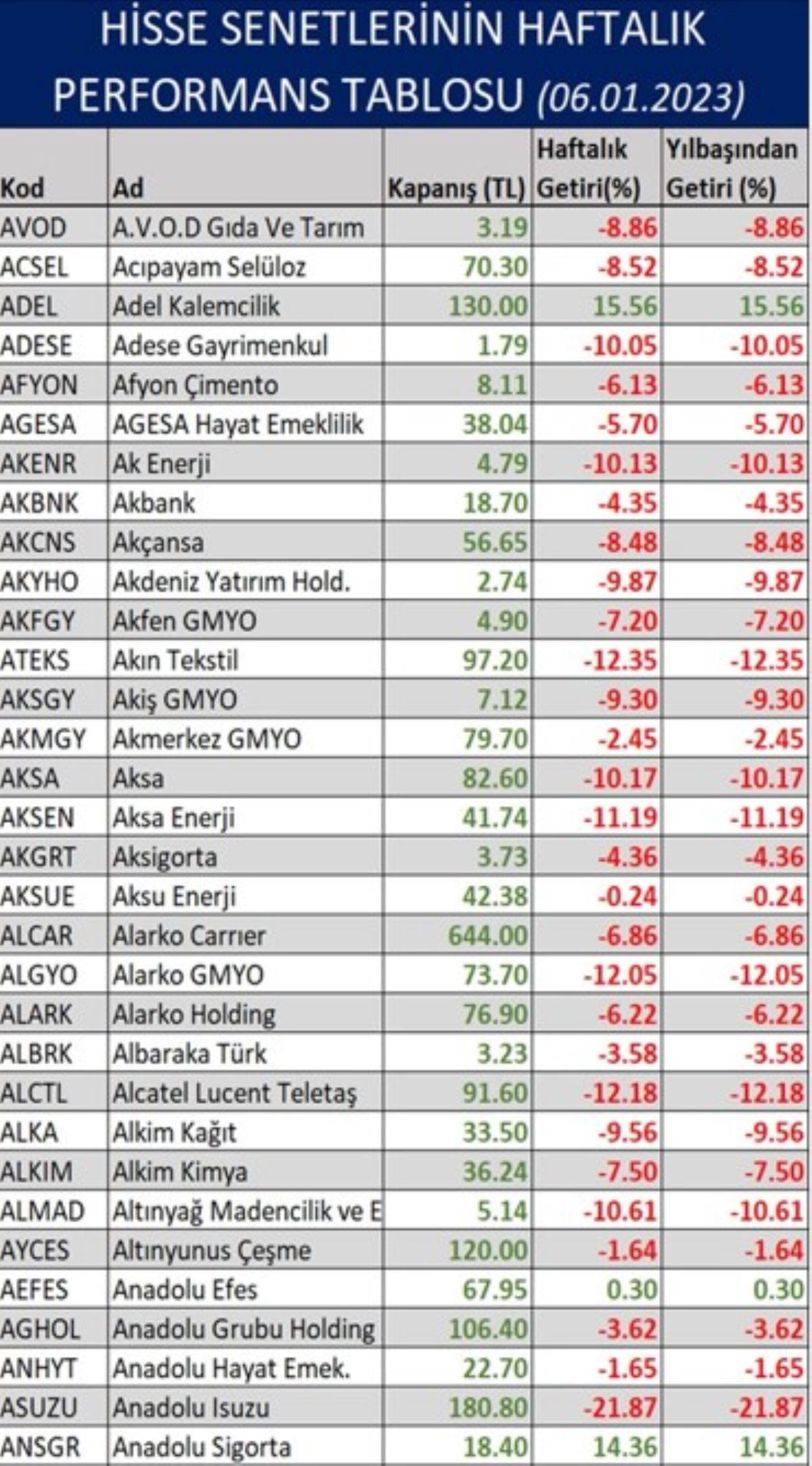 BorsaGündem.com'un aktardığına göre, Borsa İstanbul'da işlem gören hisse senetlerinin yeni yıldaki ilk haftalık performansları şu şekilde:
