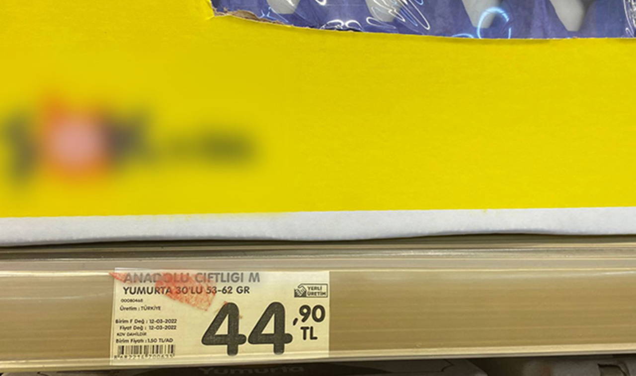 E Market: 1 Adet L Boy Yumurta Fiyatı: 1,31 TL