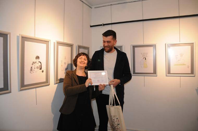 Açılış konuşmasında Atölye Kurucusu Emre Yılmaz “Yine harika bir kalabalıkla karşı karşıyayız. Karikatür Atölyemizin on ikinci sergisi oldu. Heyecanla bu günü bekliyorduk. Aslı’yı hepiniz tanıyorsunuz. Yeni kuşaktan oldukça takipçisi olan ve duyarlı çizgilerin sahibi bir insan. Çizgilerine, işlediği konulara ve bakış açısına hayran olmamak mümkün değil. Kendisine ve ilgi gösteren herkese çok teşekkür ediyorum.” dedi.