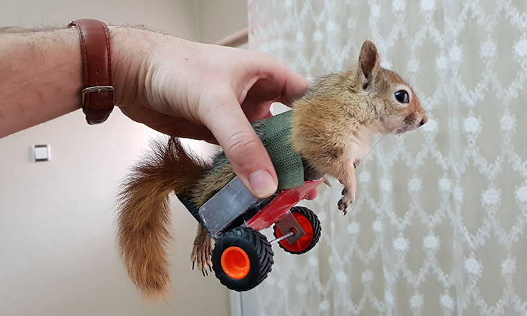 Mardin'in Derik ilçesinde yaşayan ve çevresinde 'Hayat tamircisi' olarak tanınan Hasan Kızıl, kendi imkanıyla yaptığı yürüteç ve protezle bugüne kadar 300 hayvanın yürümesini sağladı. Türkiye Diyanet Vakfı'nca 'Uluslararası İyilik Ödülü' verilen Kızıl, bu kez de yaptığı yürüteçle arka iki ayağını kullanamayan sincabın yürümesini sağladı.