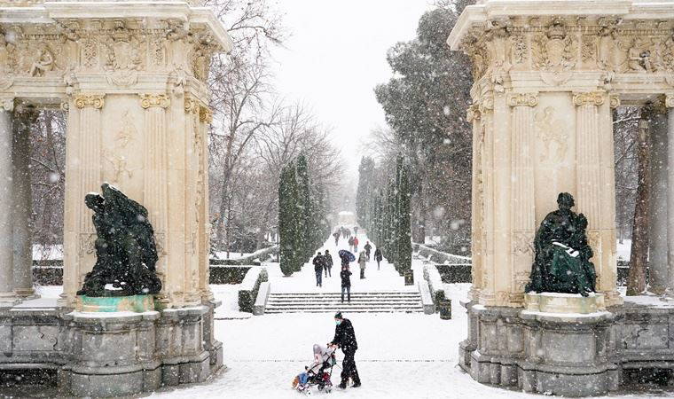 Tarihindeki en yoğun kar yağışını gören başkent Madrid'de neredeyse tüm yolların ve Barajas Havalimanı'nın kapatıldığı, tren ve otobüs seferlerinin durdurulduğu duyuruldu.