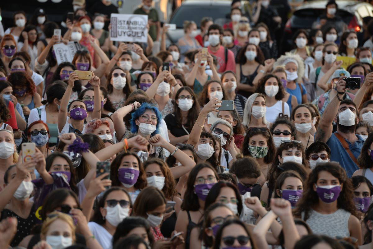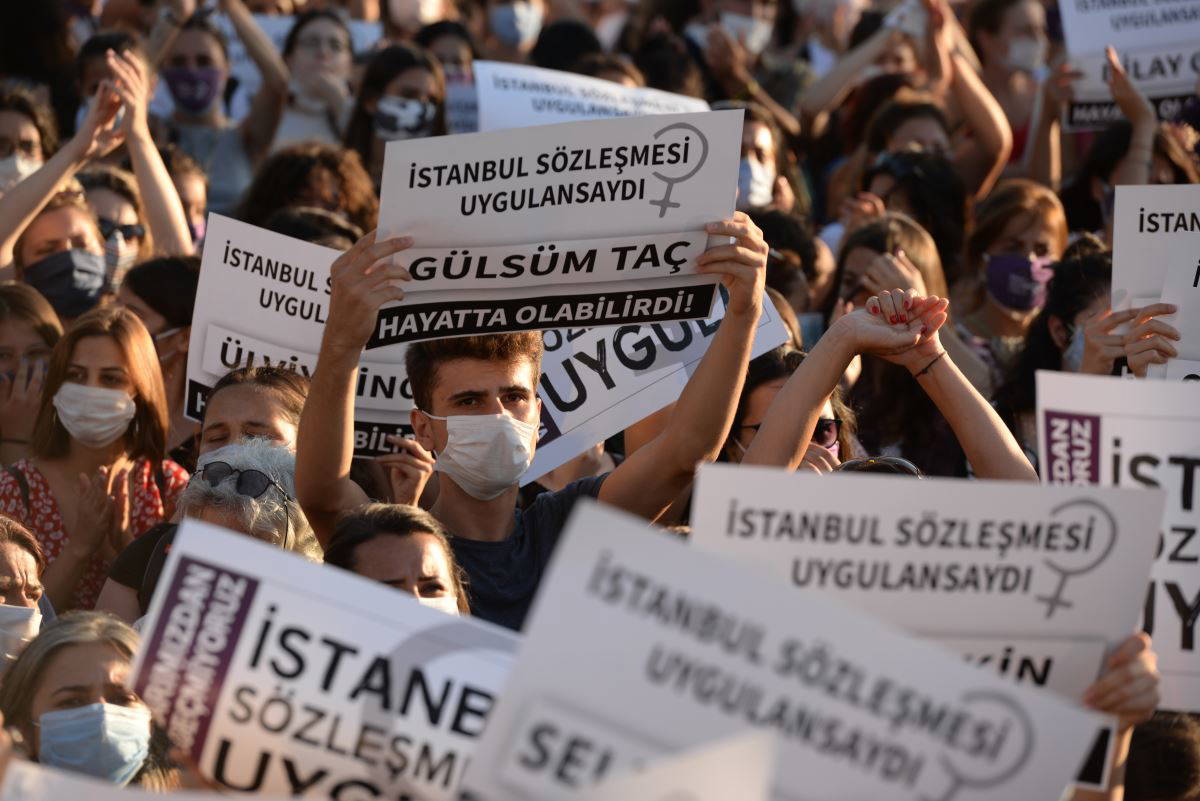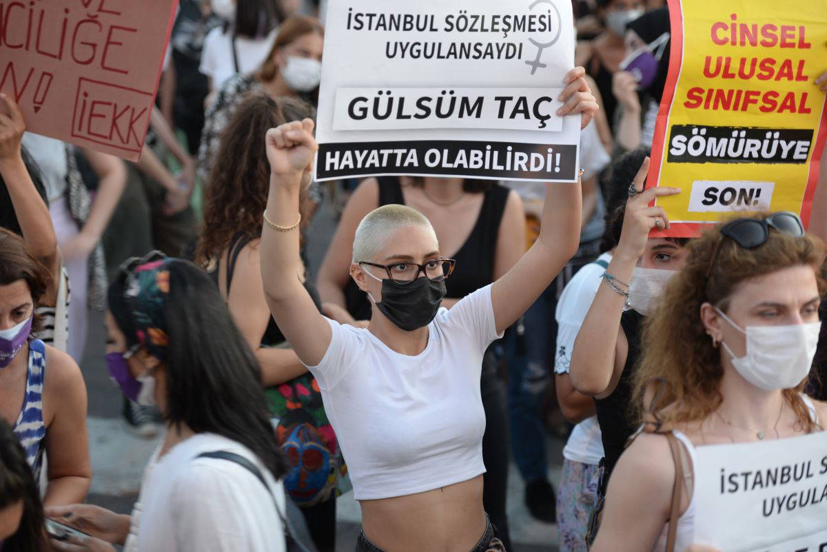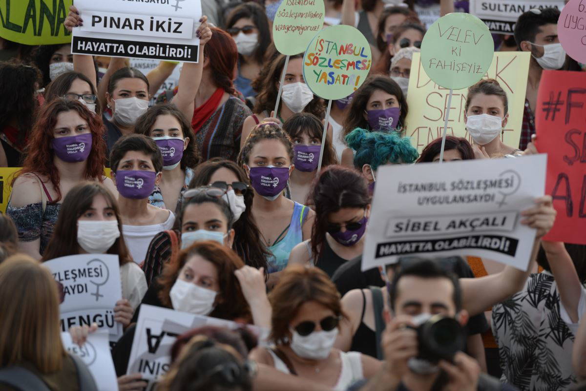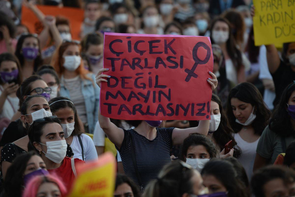 İstanbul Kadıköy Beşiktaş İskelesi’nde bir araya gelen binlerce kadın, “Haklarımızdan ve hayatlarımızdan vazgeçmiyoruz”, “İstanbul Sözleşmesini uygula”, “Eşitlik ve özgürlük için mücadeleye”, “Tesadüf değil kadın cinayeti” sloganları attı.