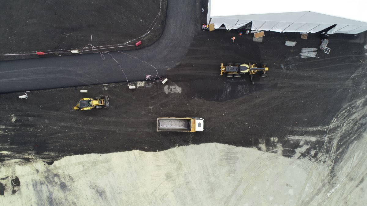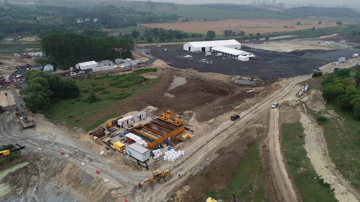Bir taraftan köprü için kazı çalışmaları devam ederken diğer taraftan da şantiyeye tören alanı kuruldu. Çalışmalardaki son durum havadan görüntülendi.