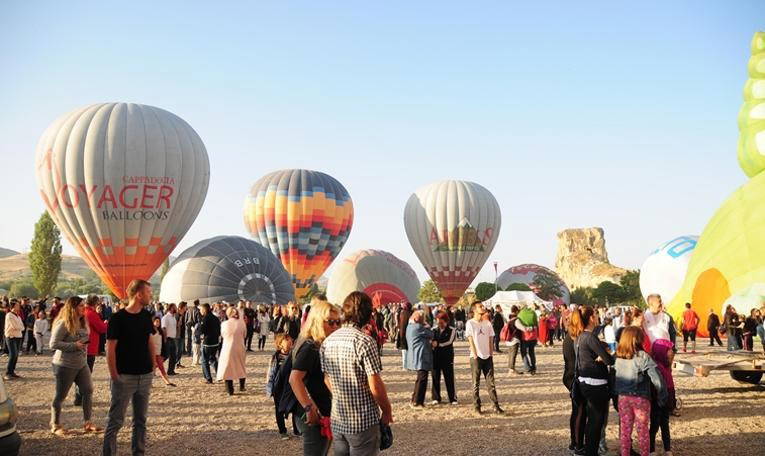 Sıcak hava balonları, daha sonra gökyüzüne bırakıldı. Çeşitli figürlerdeki balonlar, peribacaları ve doğal kaya oluşumları arasında gökyüzünü süsleyerek renkli görüntüler oluşturdu.
