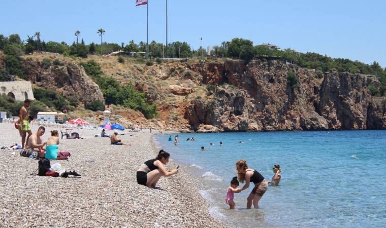 sıcaklığının 27.4 derece ölçüldüğü turizmin başkenti Antalya'da tatilciler,