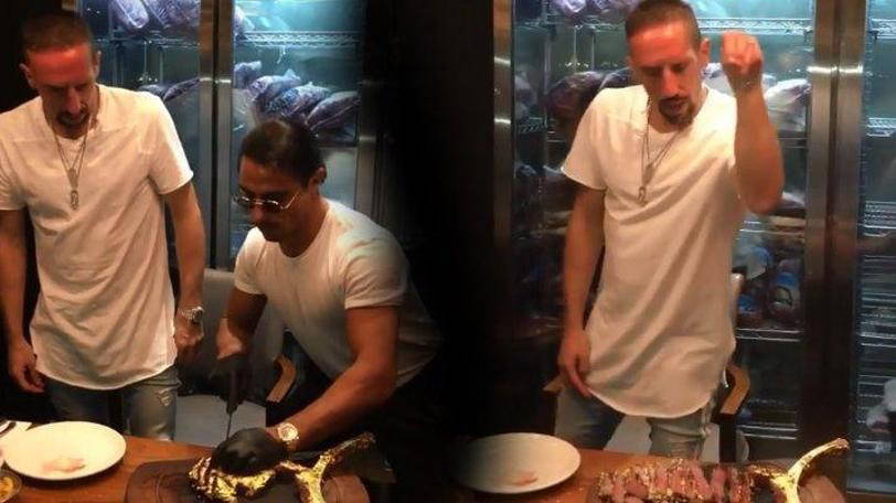 Futbolcunun “Yeni yıla başlamak için bir tutam tuz ve Türk kardeşimi ziyaret etmekten daha iyi bir yol yok” diyerek Instagram’da paylaştığı videoda Nusret’in, Ribery’ye altın kaplama antrikot hazırladığı görülmüştü.