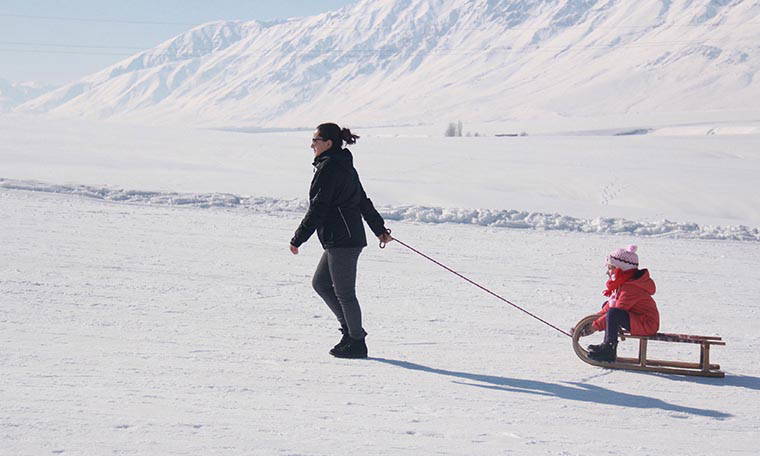 İlçe merkezine 4 kilometre uzaklıktaki Öveçler köyü mevkisindeki kayak merkezine gelen ziyaretçiler, doğal güzellikler arasında kayak ve kızakla kaymanın keyfini çıkarıyor.