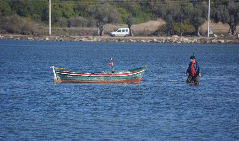 Seferihisar Sığacık'ta sabah saatlerinde gel-git başladığı görülürken, suyun dibinde bulunan otlar ve yosunlar suyun yüzeyine çıktı.