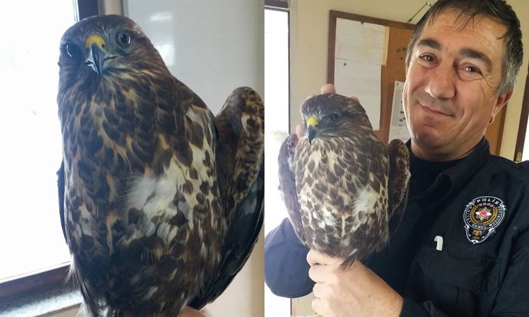 Tepebaşı İlçe Emniyet Müdürlüğü ekipleri, Esentepe Mahallesi Kanal Boyu Sokak'ta devriye esnasında yol kenarında bulunan tarlada bir şahin olduğunu gördü. Hareketsiz şekilde tarlada yatan şahin, ekiplerin yaklaştığını fark edince kaçmaya başladı. Kaçarken Hasan Polatkan Havaalanı'nın tellerine takılan şahin, polis ekipleri tarafından kurtarıldı. Büyükşehir Belediyesine ait Hayvan Sağlığı Merkezi'ne götürülen ve vücudunda yara izlerine rastlanmayan talihsiz kuşun aç olduğu ve enfeksiyon nedeniyle bitkin düştüğü anlaşıldı.