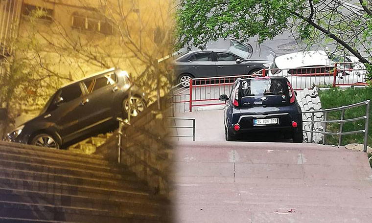 Otomobili ile çıkmaz sokağa giren sürücü, merdivenleri gece karanlığında farkedemedi. Sürücü otomobiliyle yolun devamı sanarak girdiği yaklaşık 200 basamaklı merdivenlerde bir süre ilerledi.