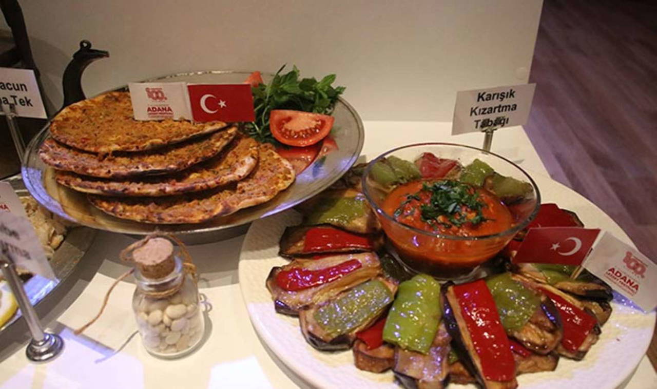 Adana Büyükşehir Belediyesi, ilçe belediyeleri, odalar ve sivil toplum kuruluşları işbirliğince 6-8 Ekim'de düzenlenecek festival için Adana Müze Kompleksi'nde kentin yöresel yemekleri sergilendi.
