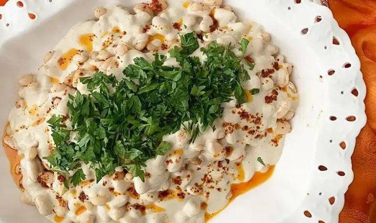 Üzerine fasulyeleri yayın ve tahin sosunu gezdirerek dökün.