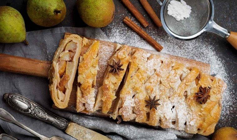 Armutlu strudel genellikle elmalı versiyonu ile bilinse de, armutlu versiyonu da ayrı bir lezzet sunar. Tarçın, ceviz ve armutun harika uyumu, çıtır çıtır hamurla birleşerek kahve saatlerinin vazgeçilmezi olmaya aday! İşte evde kolayca hazırlayabileceğiniz Avusturya usulü Armutlu Strudel tarifi!